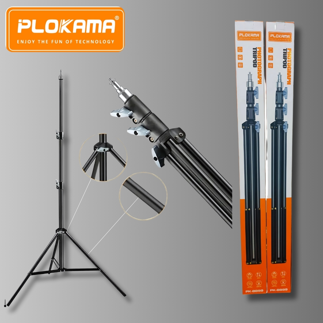 The Plokama PK-8899 Tripod Stand is a reliable, professional-grade support solution designed for photographers, videographers, and content creators in Pakistan. Built with a high-quality aluminum alloy body, this tripod stand delivers excellent durability, balance, and long-term performance for both indoor and outdoor use.